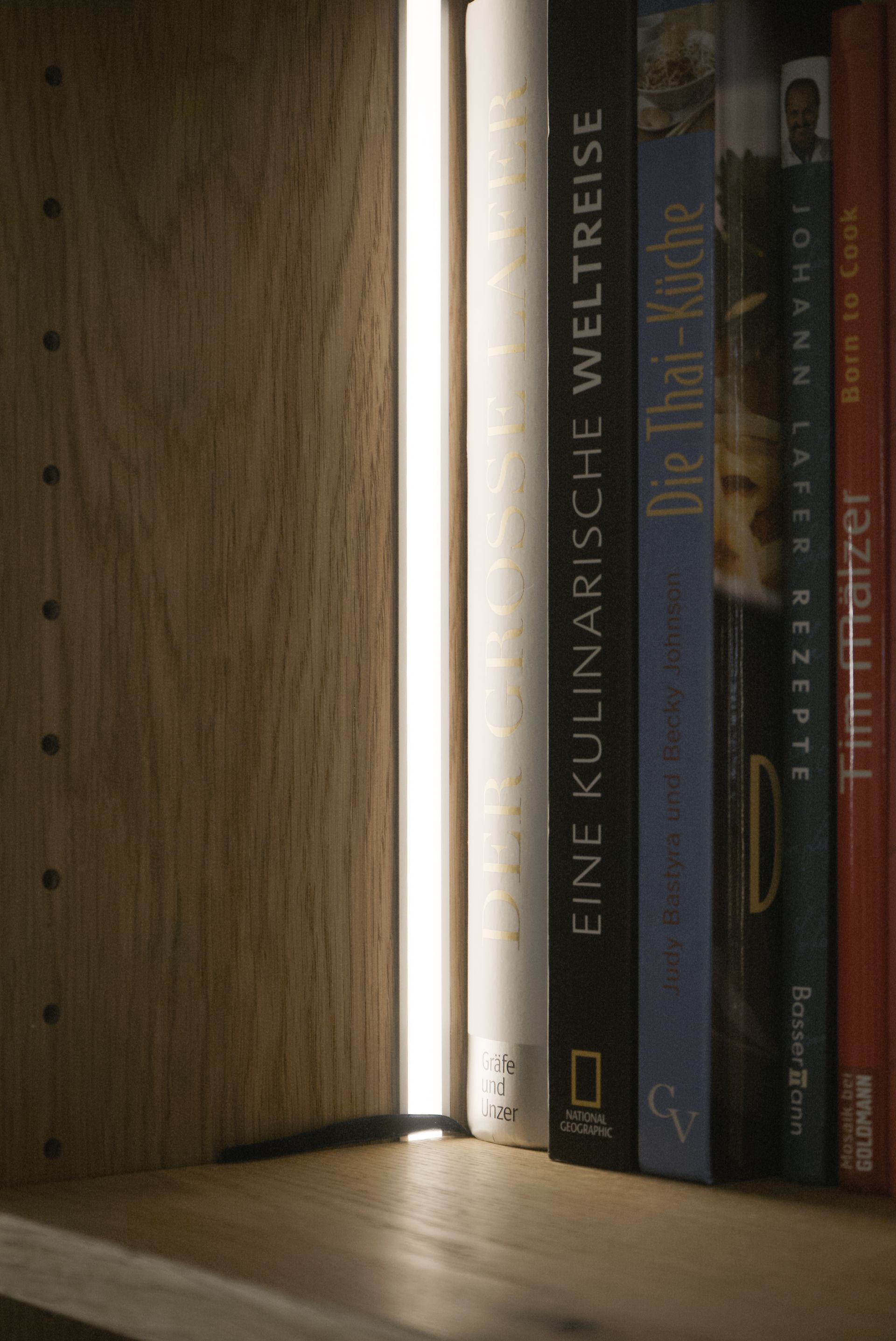 Hier wurde eine durchgehende Lochreihe eingeplant. Dieser ermöglicht es, Regalböden oder andere Elemente in unterschiedlichen Höhen zu platzieren. So kann der Stauraum individuell angepasst werden.
