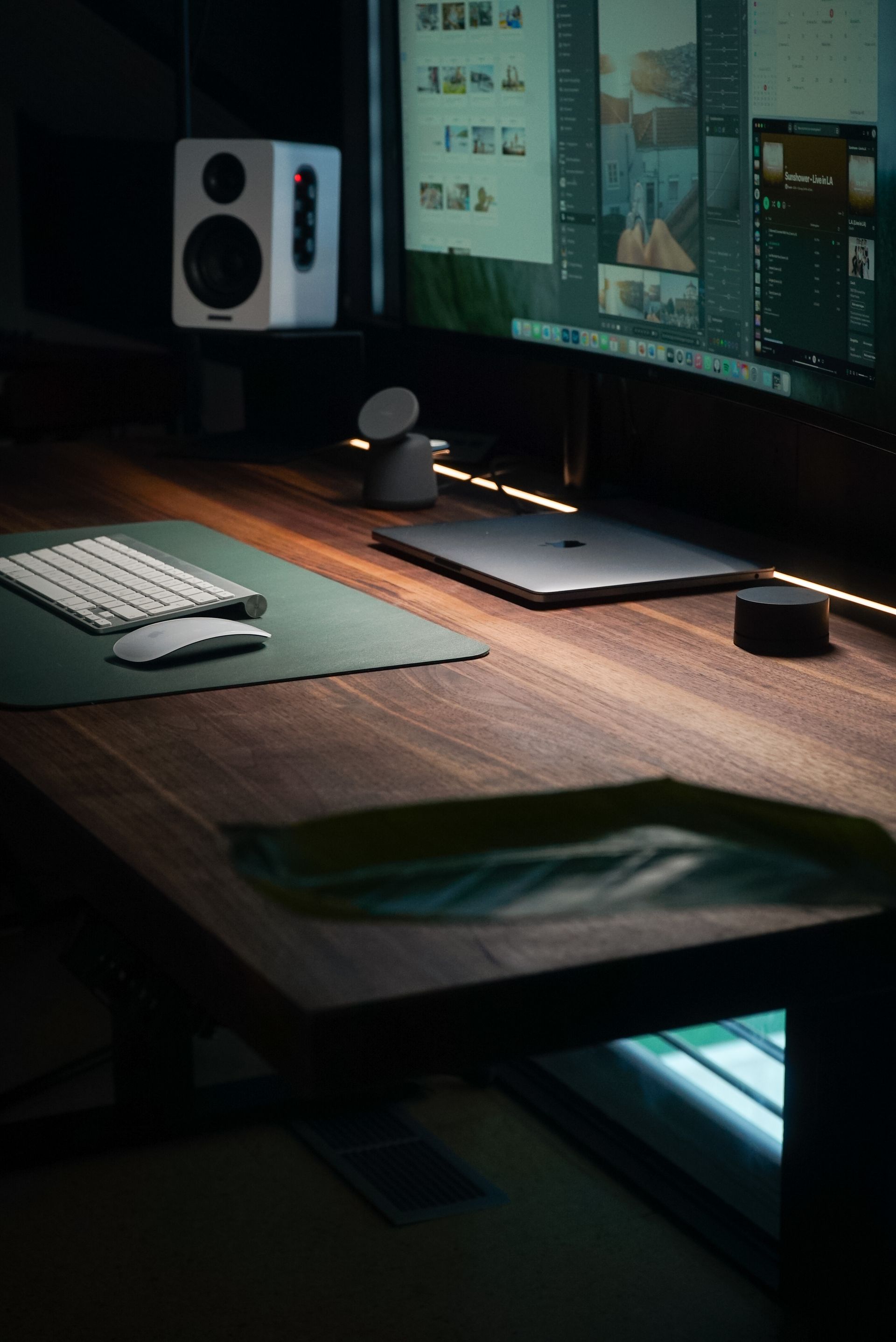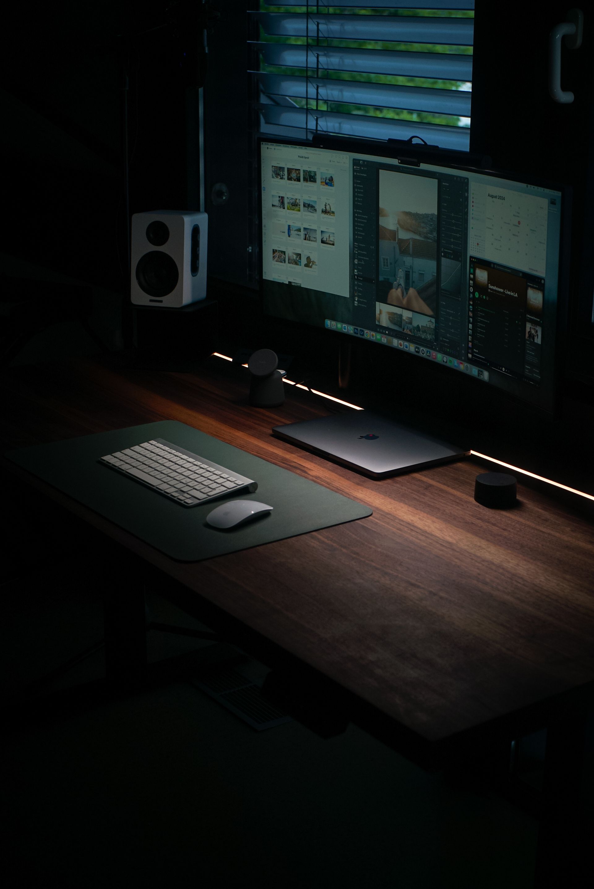 Ein höhenverstellbarer Schreibtisch mit integrierter LED Beleuchtung kombiniert moderne Technik und Komfort für eine optimale Arbeitsumgebung.